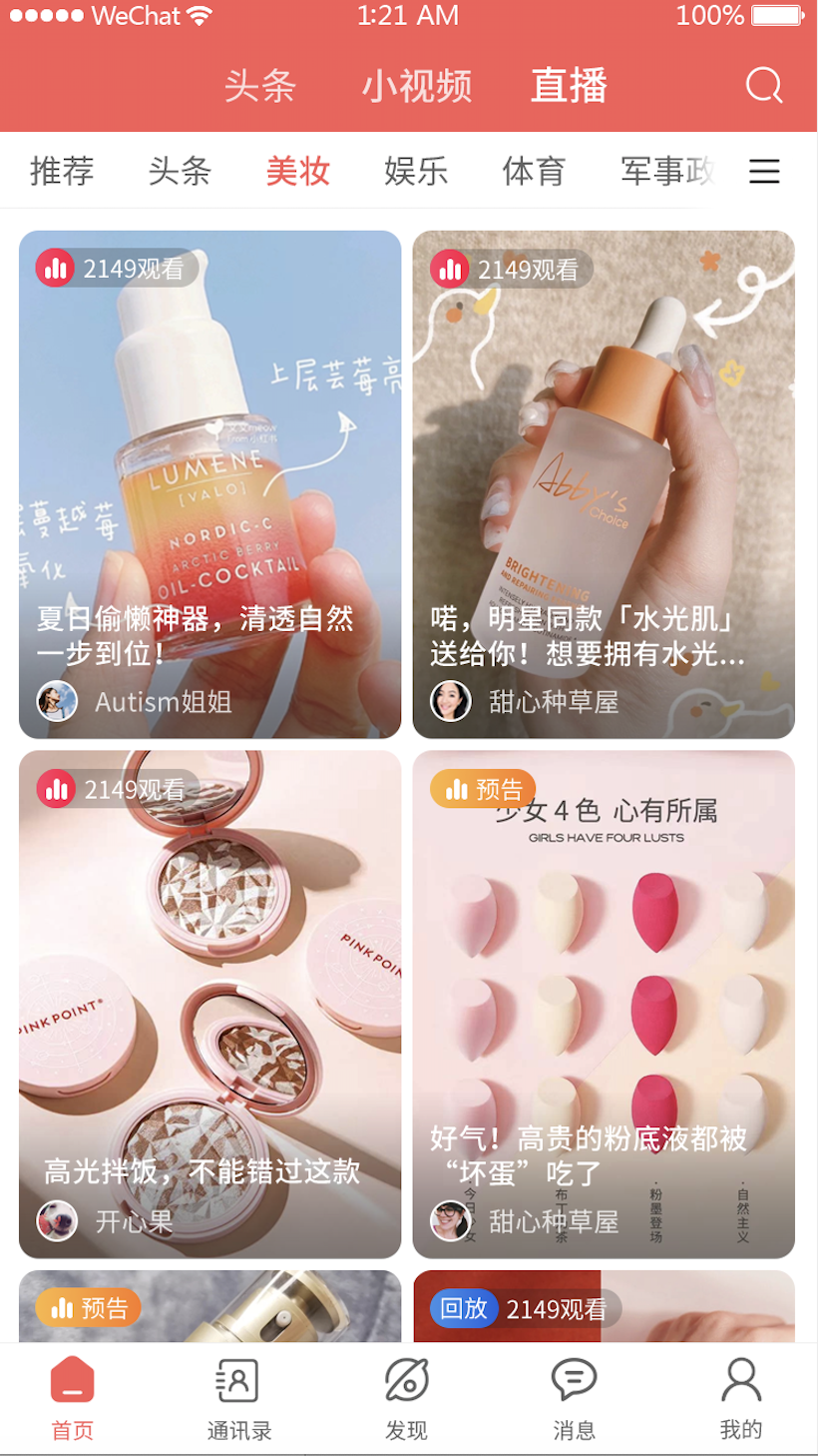 自媒体 –文章,视频,小视频,直播